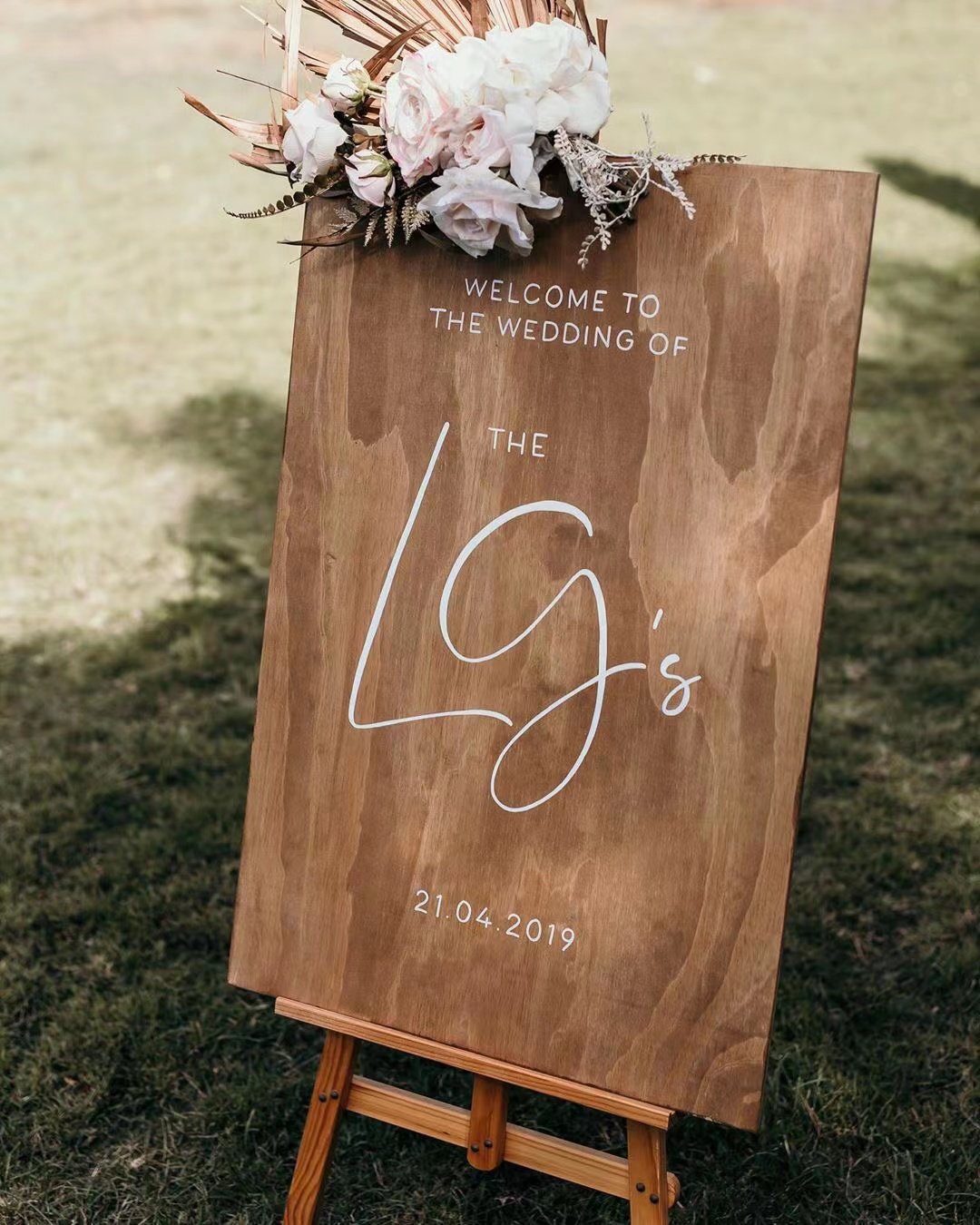 木质户外婚礼木板迎宾牌草坪婚宴森系欢迎牌布置装饰婚庆道具定制