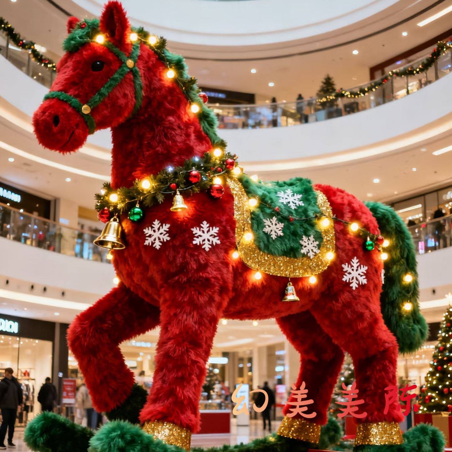网红拍照打卡点毛绒马雕塑美陈装饰商场元旦马年巨型活动道具定制