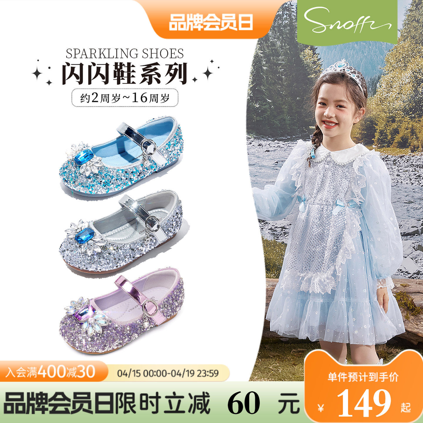 闪闪鞋|斯纳菲女童公主鞋爱莎水晶皮鞋春秋新款小女孩配裙子单鞋