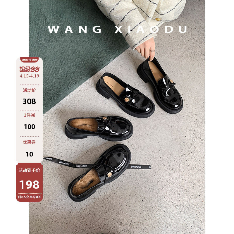 【王小毒】今天星期八●黑色小皮鞋女圆头英伦新款漆皮粗跟乐福鞋
