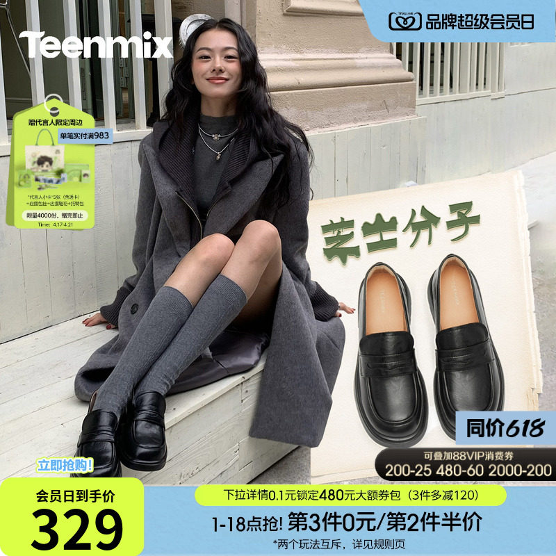 天美意芝士分子厚底休闲英伦乐福鞋复古单鞋女新款一脚蹬小皮鞋子