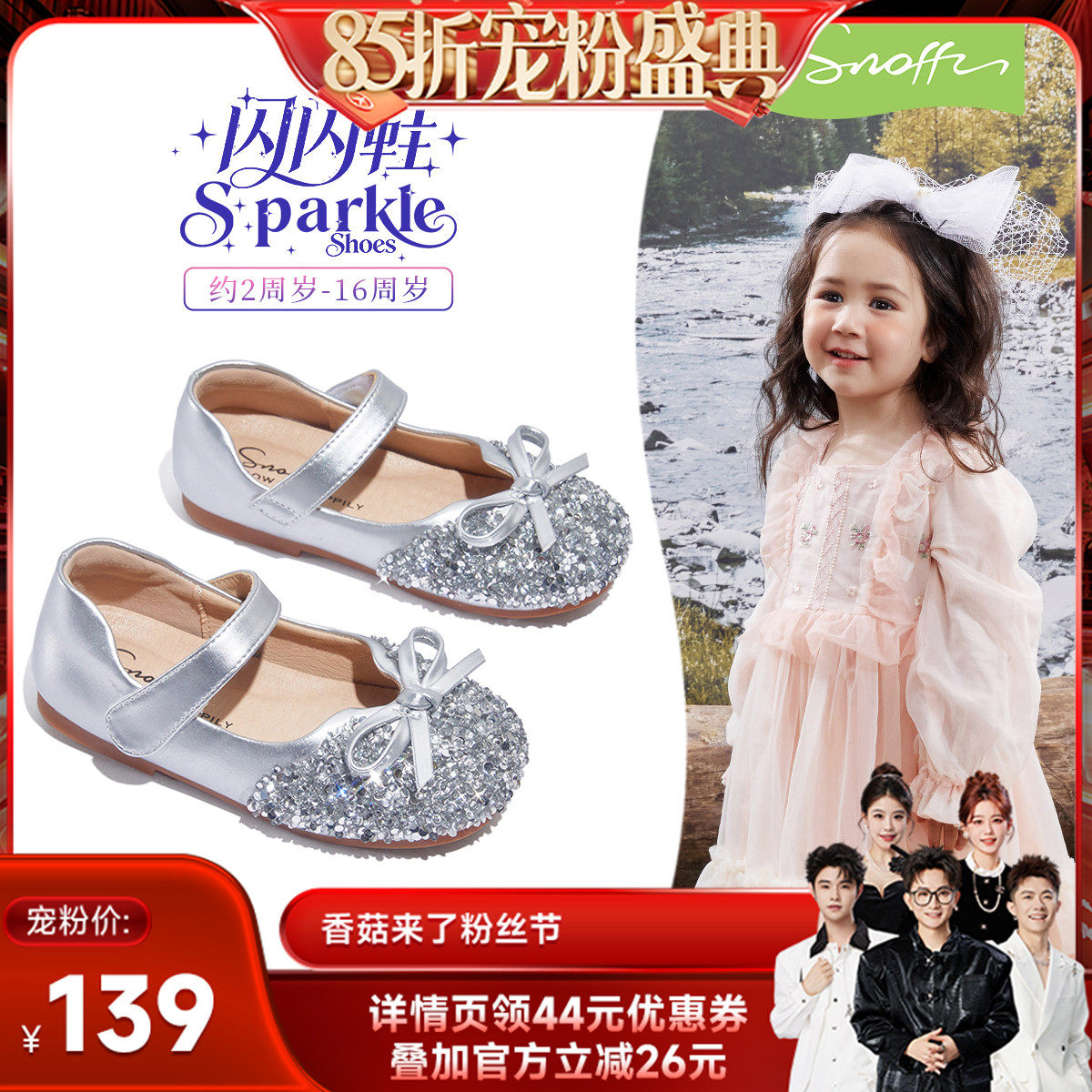 闪闪鞋|斯纳菲女童水晶鞋配裙子公主鞋2026春季款小女孩软底皮鞋
