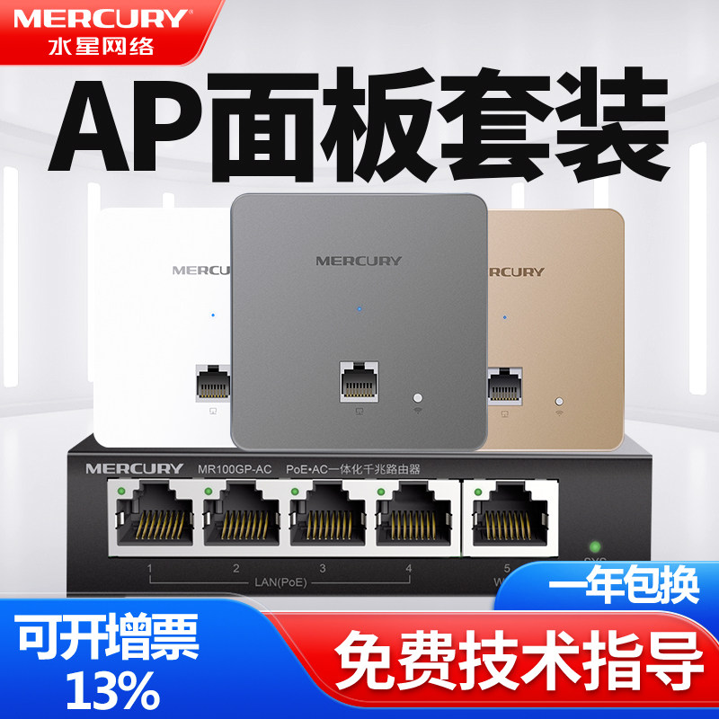 水星无线AP面板千兆端口DC供电POE AC一体化路由器入墙新款新型家用小型企业酒店双网口86型全屋WIFI套装新品