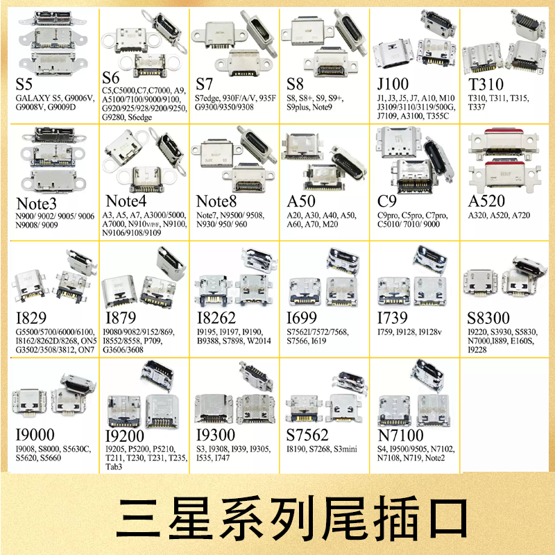 适用三星 S10 8 7 6 5 Note4 8 A520 N7100 C9 I829 879 i699尾插