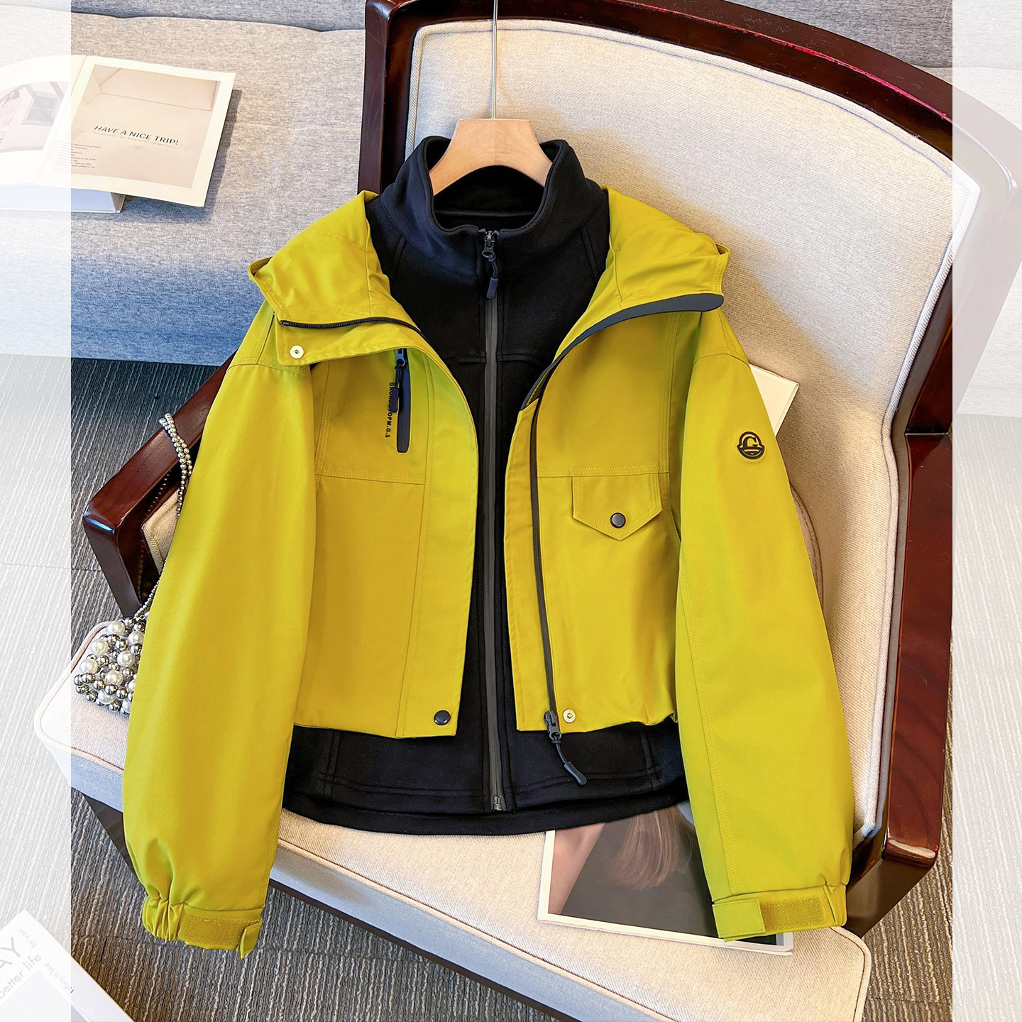 爆款连帽冲锋外套抓绒衣内胆二合一两件套女装2025冬季新短款夹克