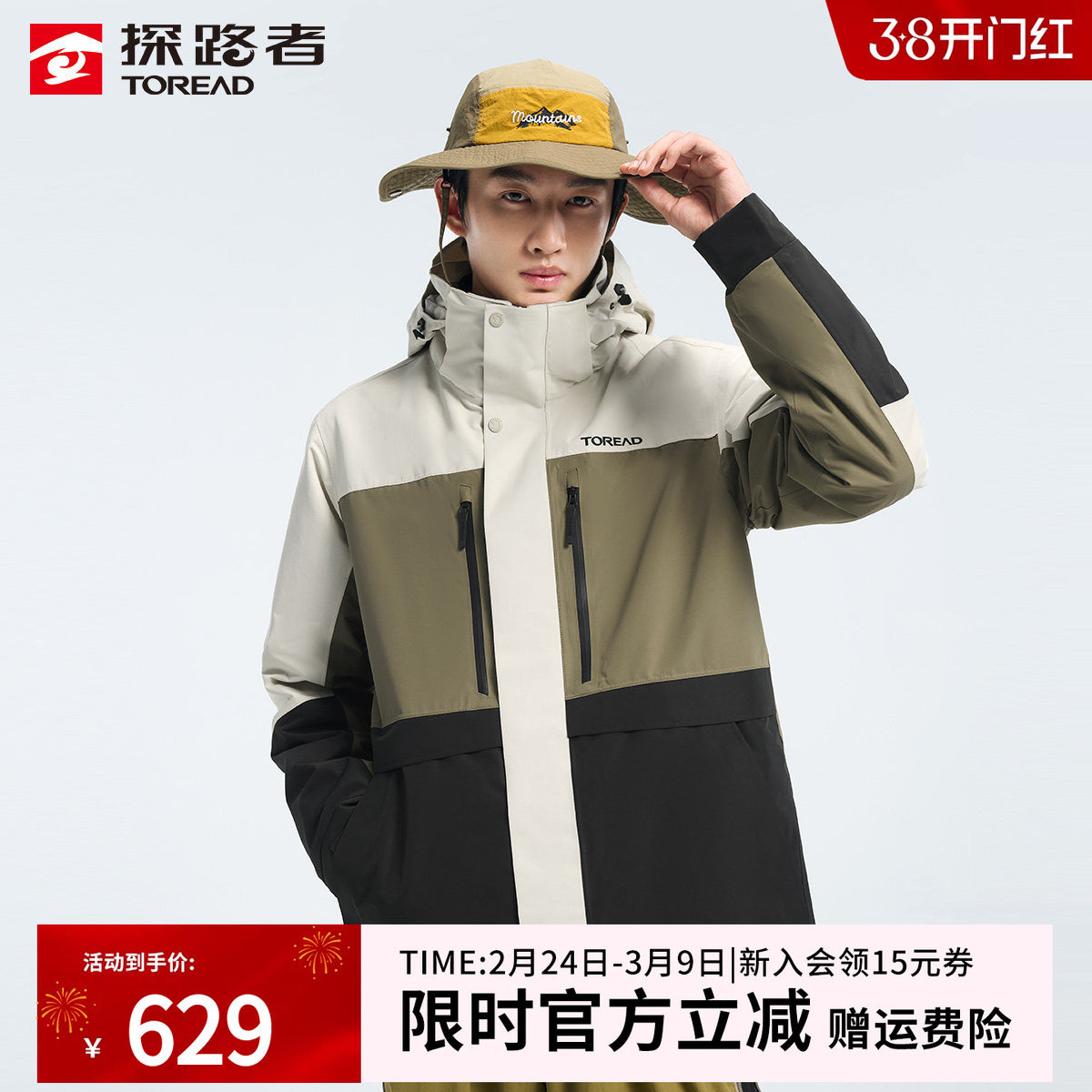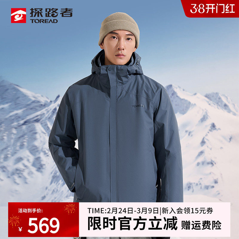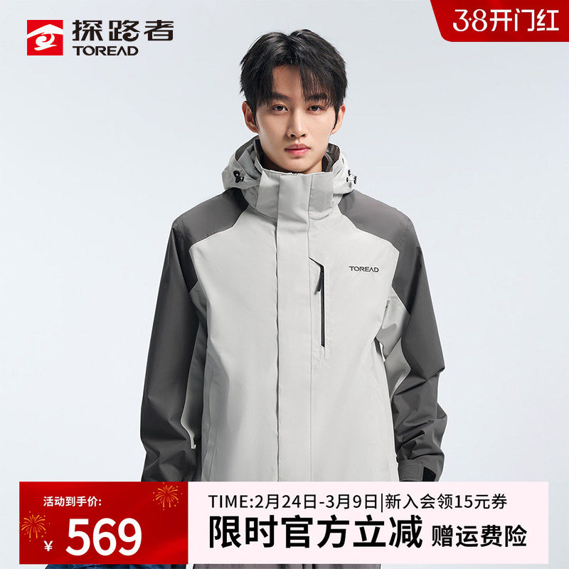 探拓户外秋冬男士保暖防风休闲两件套可拆卸抓绒内胆三合一冲锋衣