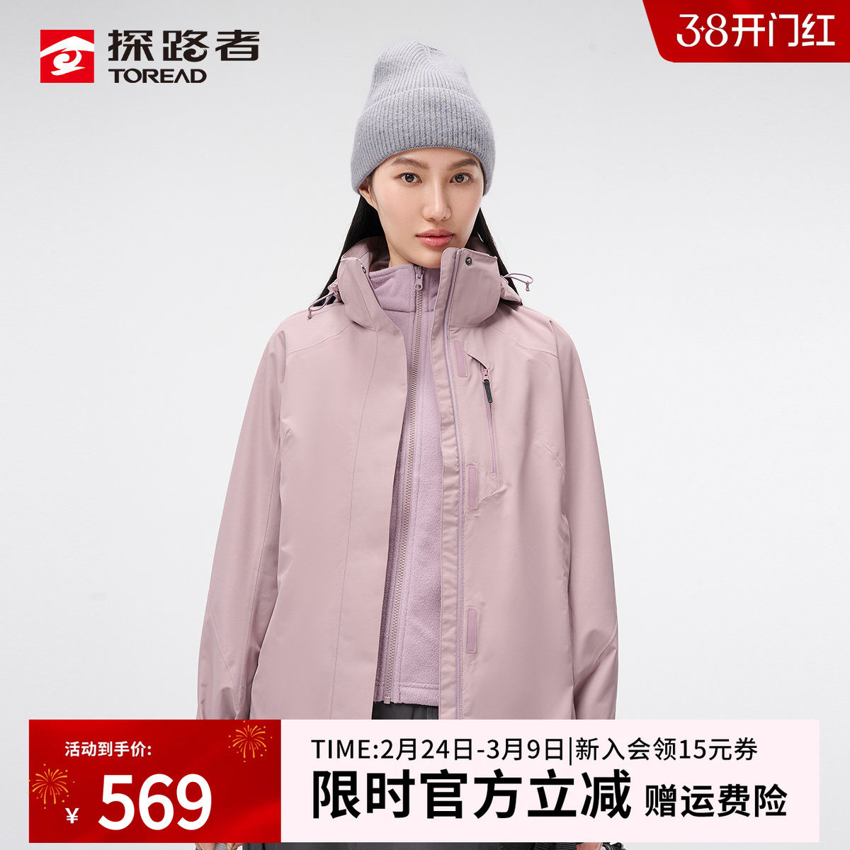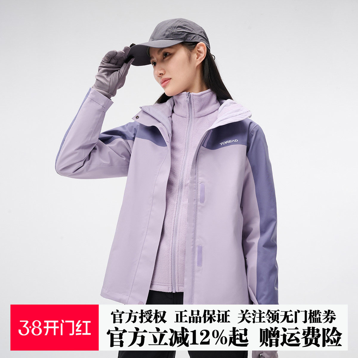雪丘岛秋冬女士新款韩版防风保暖冲锋衣三合一两件套加厚抓绒内胆