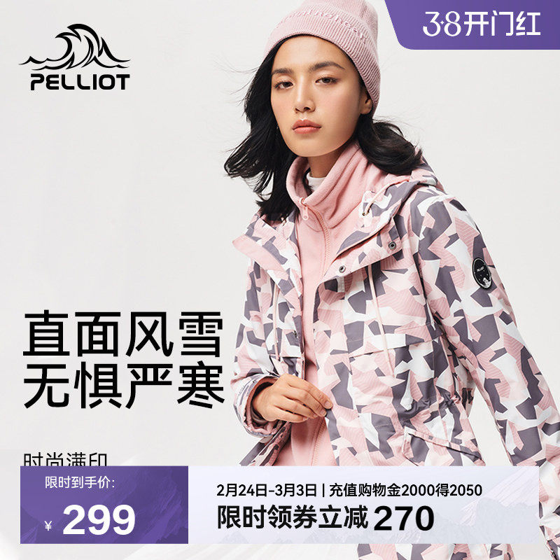 伯希和三合一冲锋衣女秋冬新款印花潮牌保暖可拆卸抓绒防水两件套