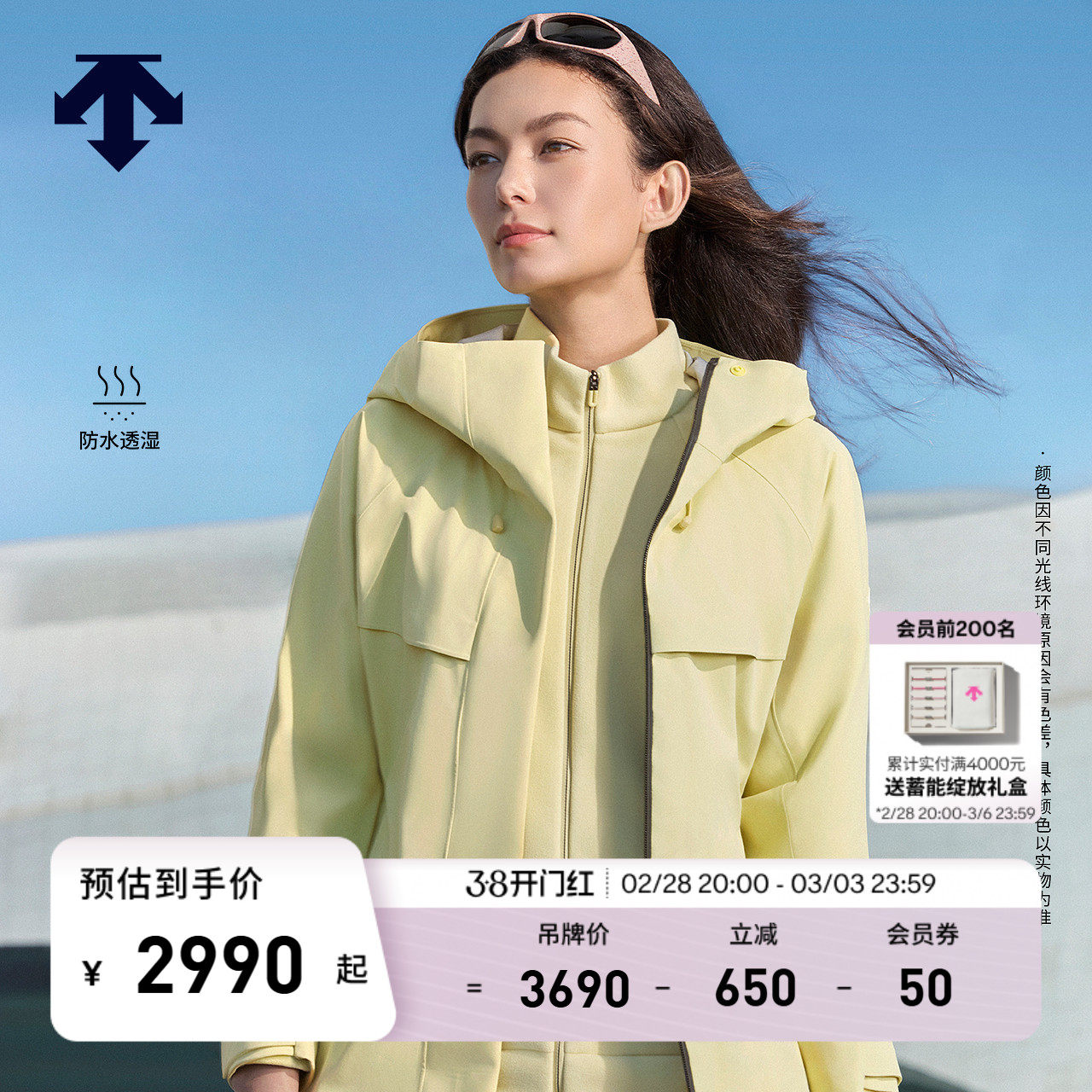 DESCENTE迪桑特女士防水透湿抓绒内胆三合一冲锋衣上衣两件套