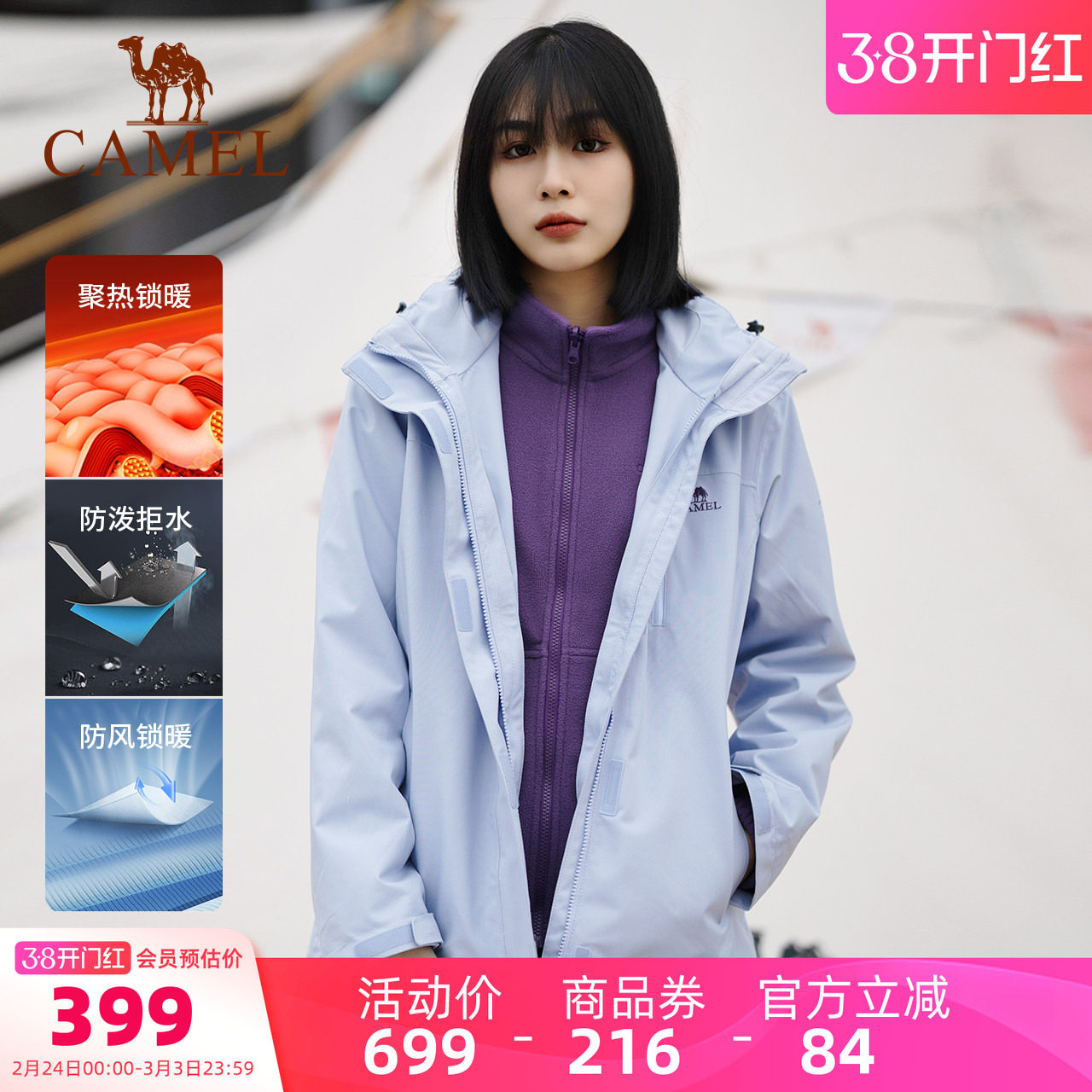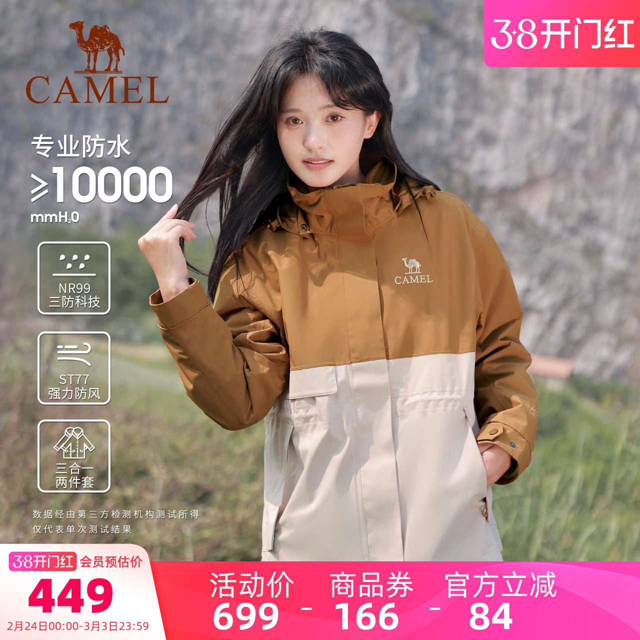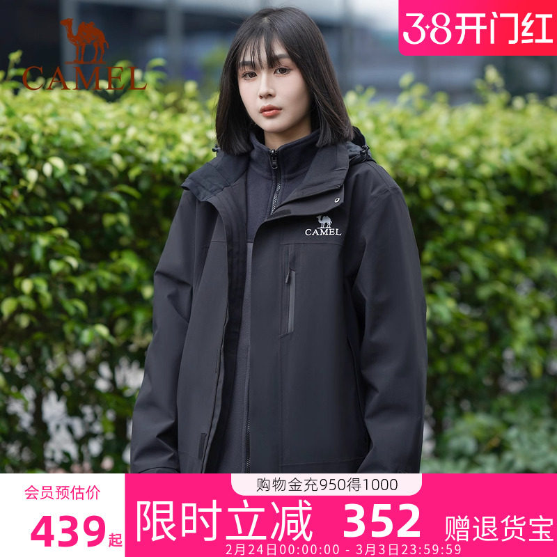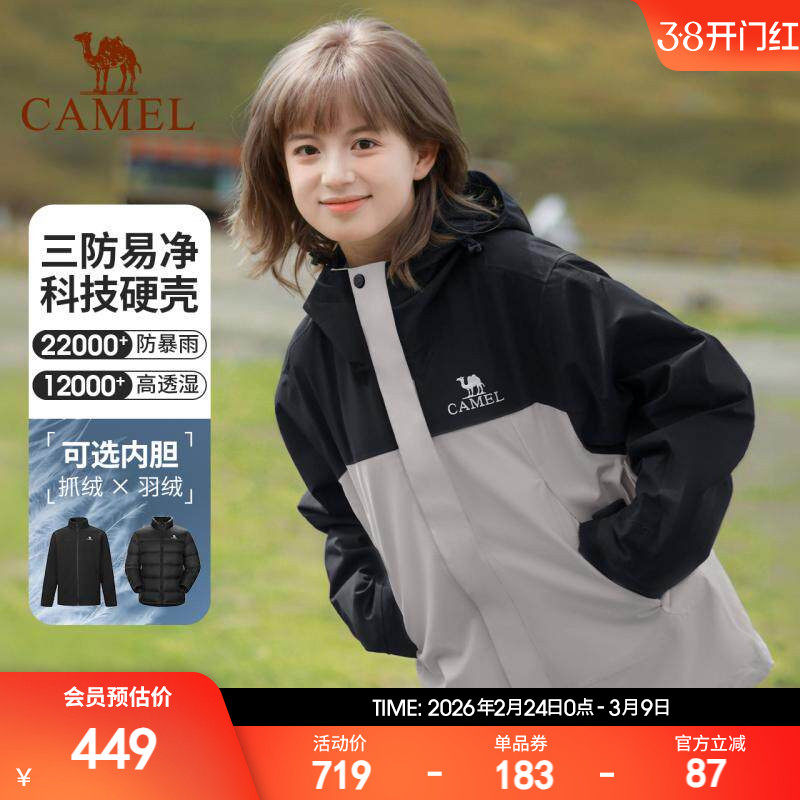 骆驼女装三合一冲锋衣2026新款休闲外套防水防风抓绒内胆两件套