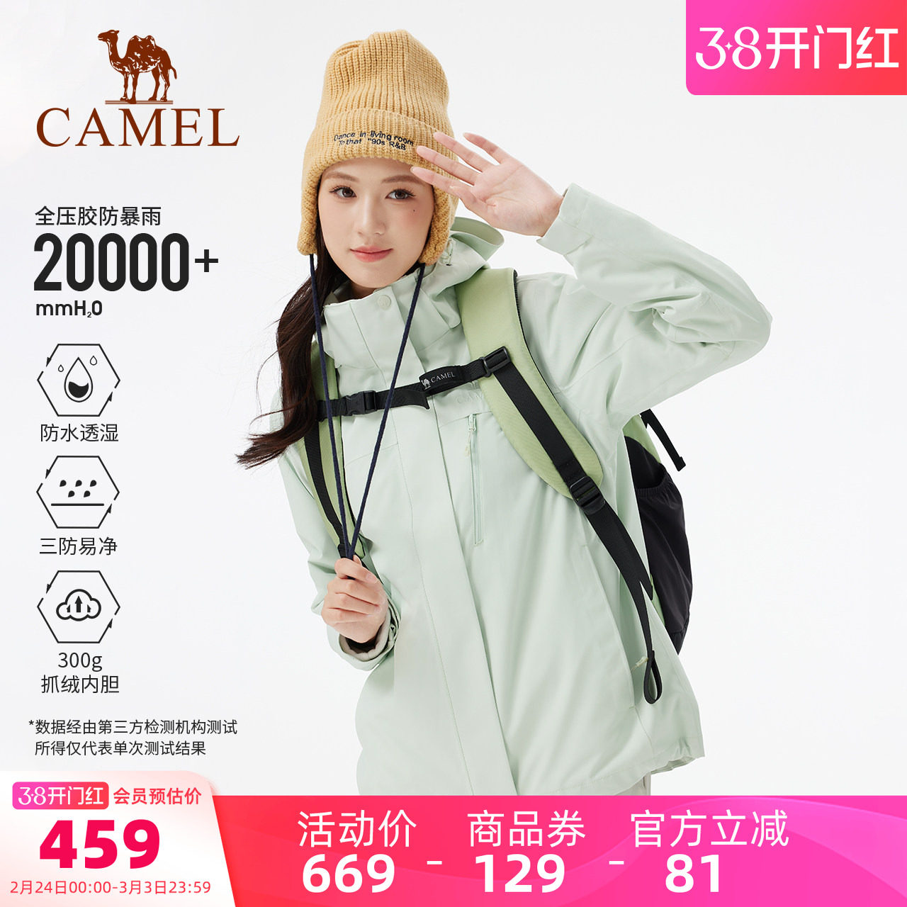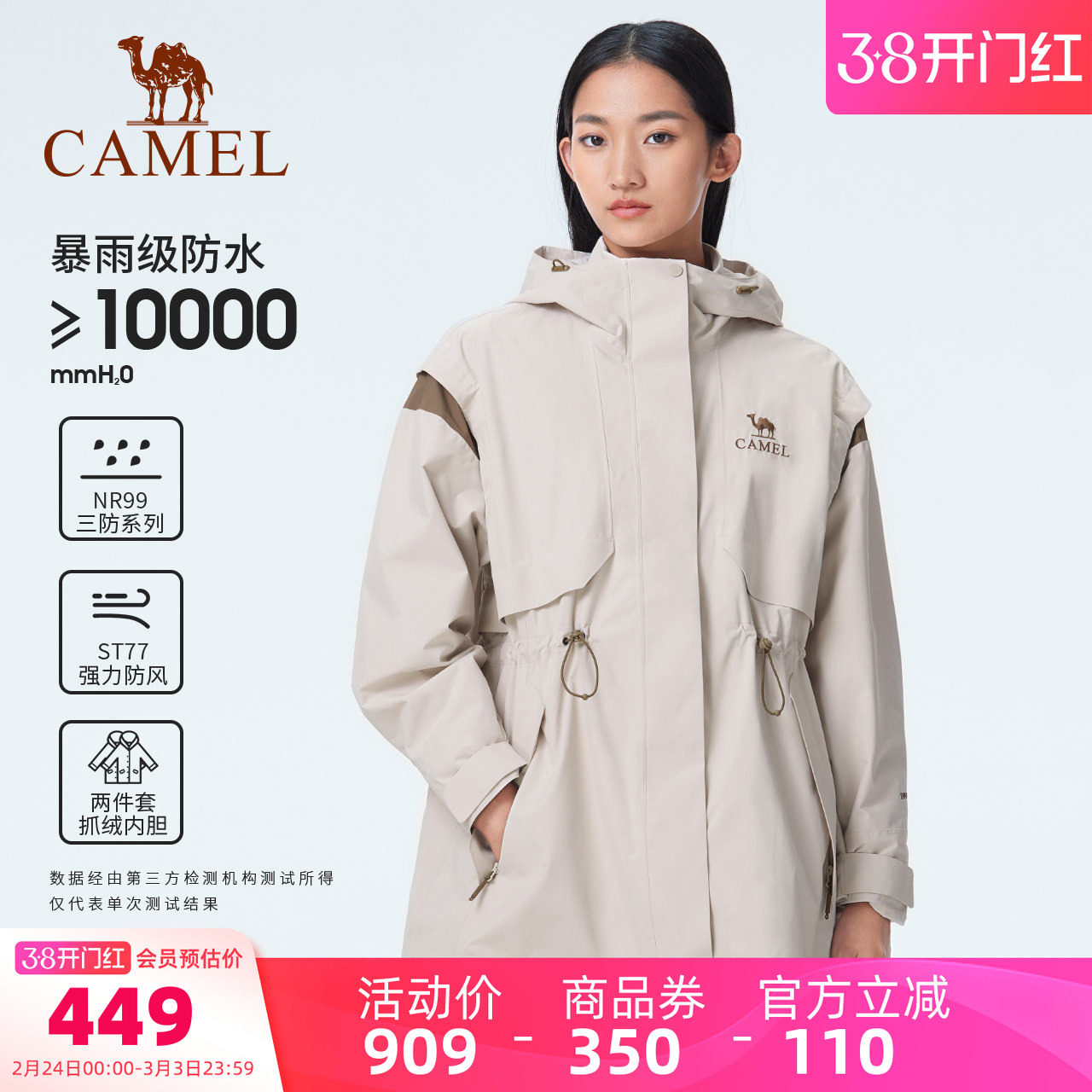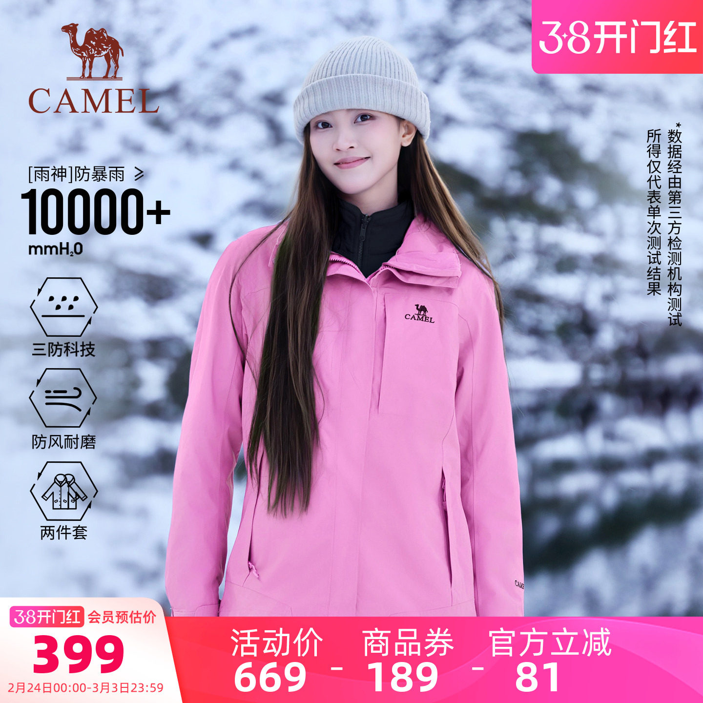 骆驼女装三合一冲锋衣2026新款休闲外套防水防风抓绒内胆两件套