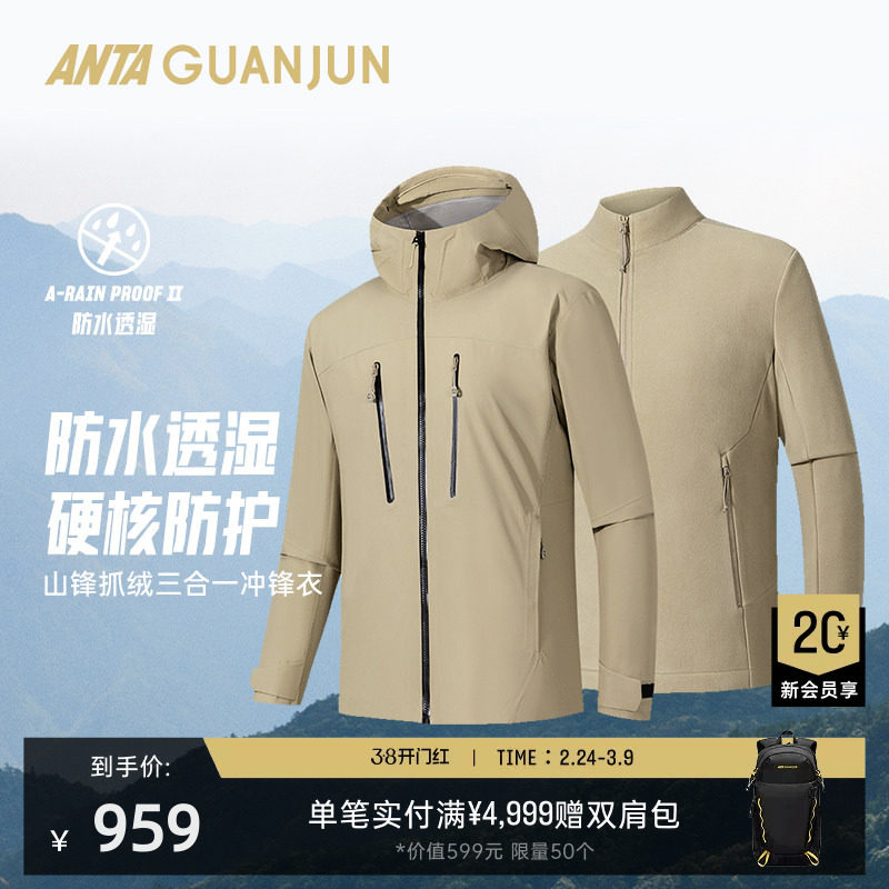 【山锋抓绒三合一】安踏冠军户外冲锋衣徒步梭织两件套152540614