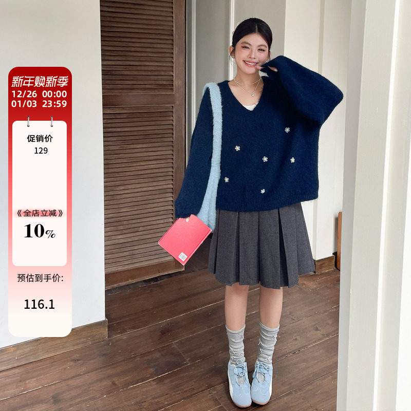 欧尼不胖秋冬氛围感穿搭独特漂亮花朵刺绣毛衣胖mm韩系慵懒风上衣