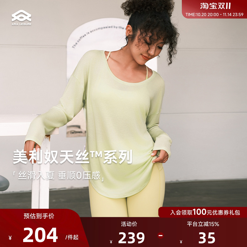 Aria Leisure 瑜伽服罩衫女夏季宽松轻薄透气运动上衣T恤长袖健身