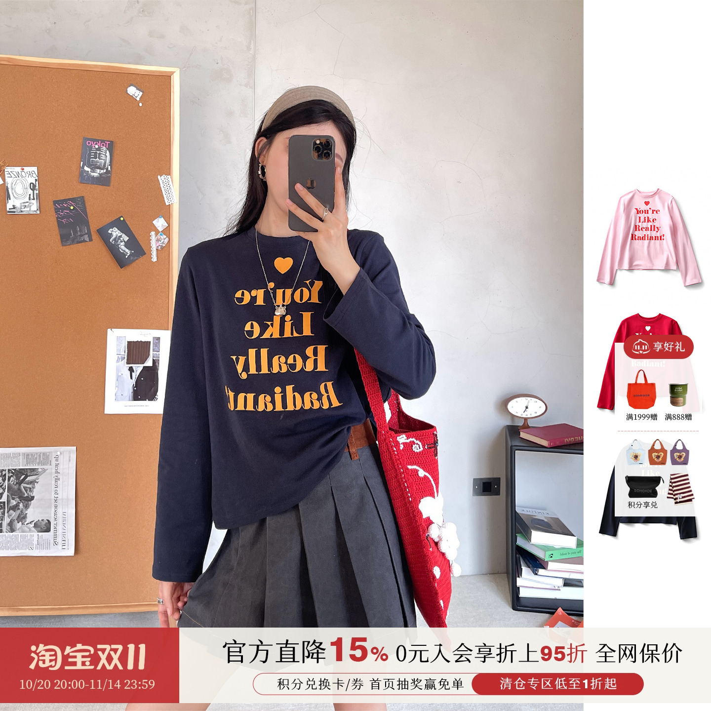 [新品]Ahhh 25秋冬美式爱心活力宽松慵懒字母印花打底T恤长袖上衣
