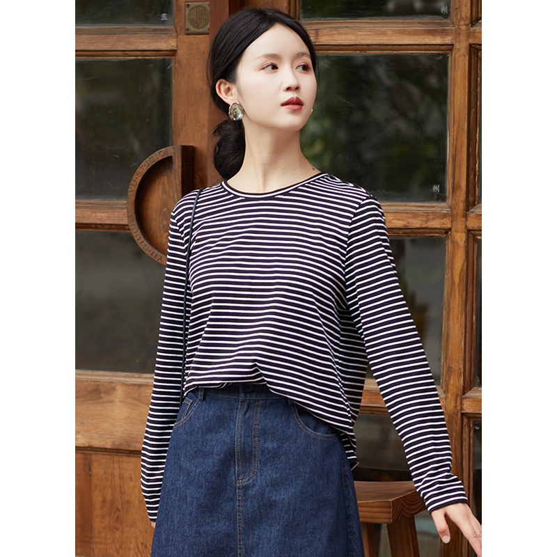 忘城T570座/条纹简史/秋新款100%长绒棉纯棉舒适条纹T恤长袖上衣