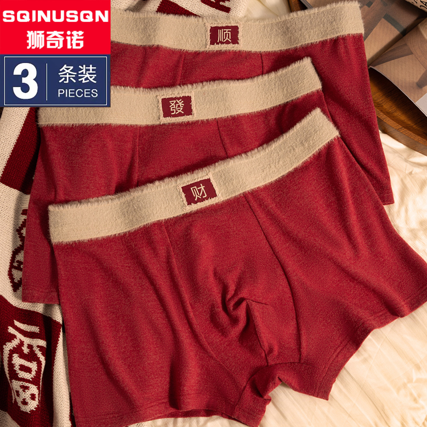 马年本命年磨毛德绒男士内裤保暖自发热绒毛红色四角裤属马平角裤