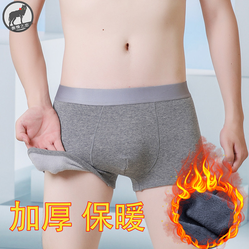 男士内裤保暖加绒加厚抗冻内裤男平角裤冬季防寒舒适中腰中青年款
