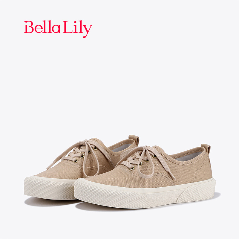 BellaLily新款透气减龄帆布鞋女低帮系带板鞋时尚休闲鞋
