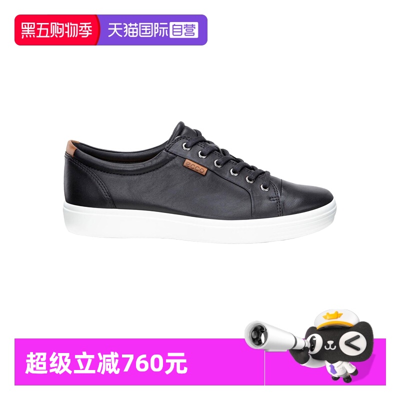 【自营】Ecco/爱步Soft 7休闲运动鞋男款黑色皮革低帮系带板鞋