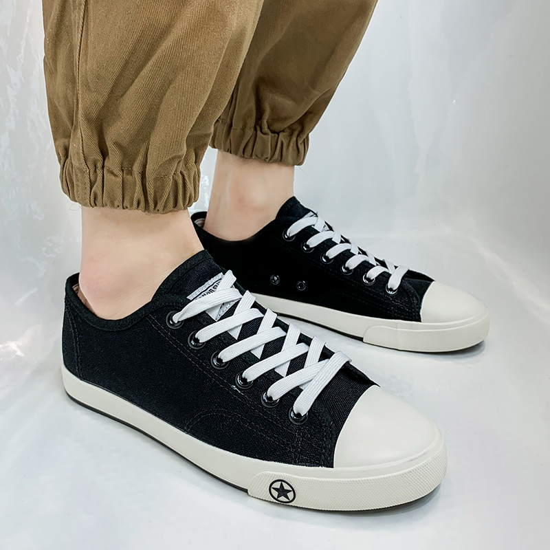 男鞋夏季潮鞋低帮系带帆布鞋男全黑工作鞋韩版潮流百搭学生鞋板鞋