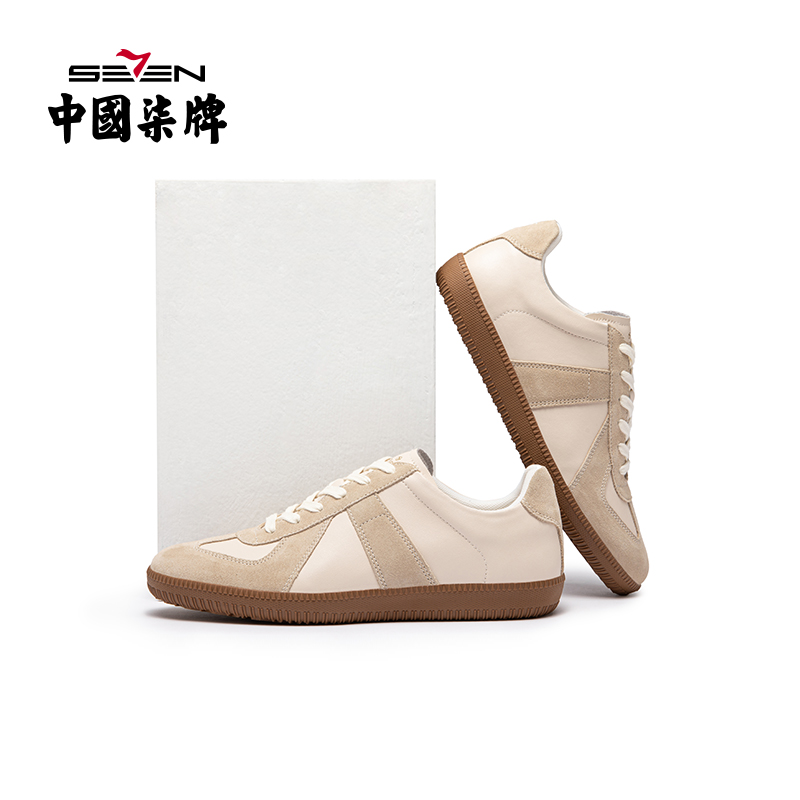 断码清仓真皮德训鞋男复古休闲运动鞋低帮系带板鞋低跟百塔阿甘鞋