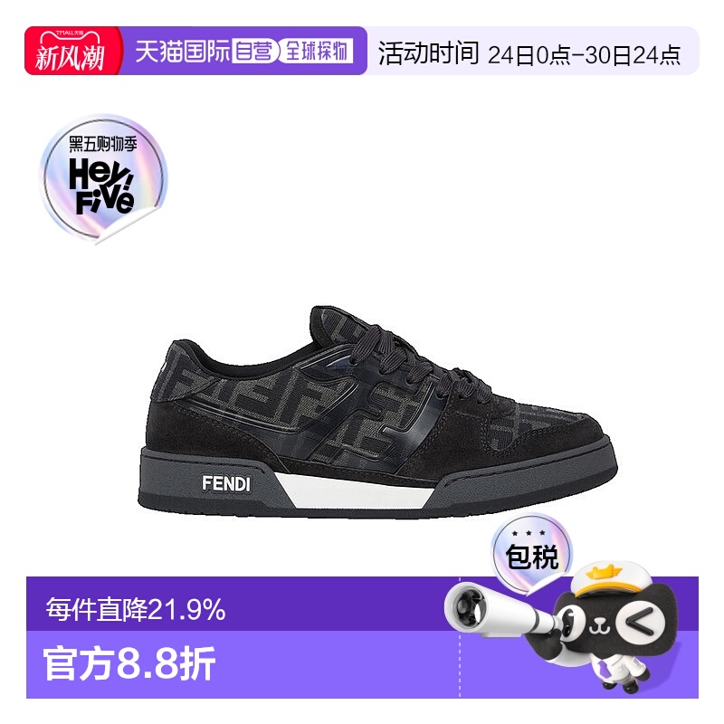 香港直邮FENDI芬迪Match麂皮提花拼织物男士低帮系带板鞋7E1688