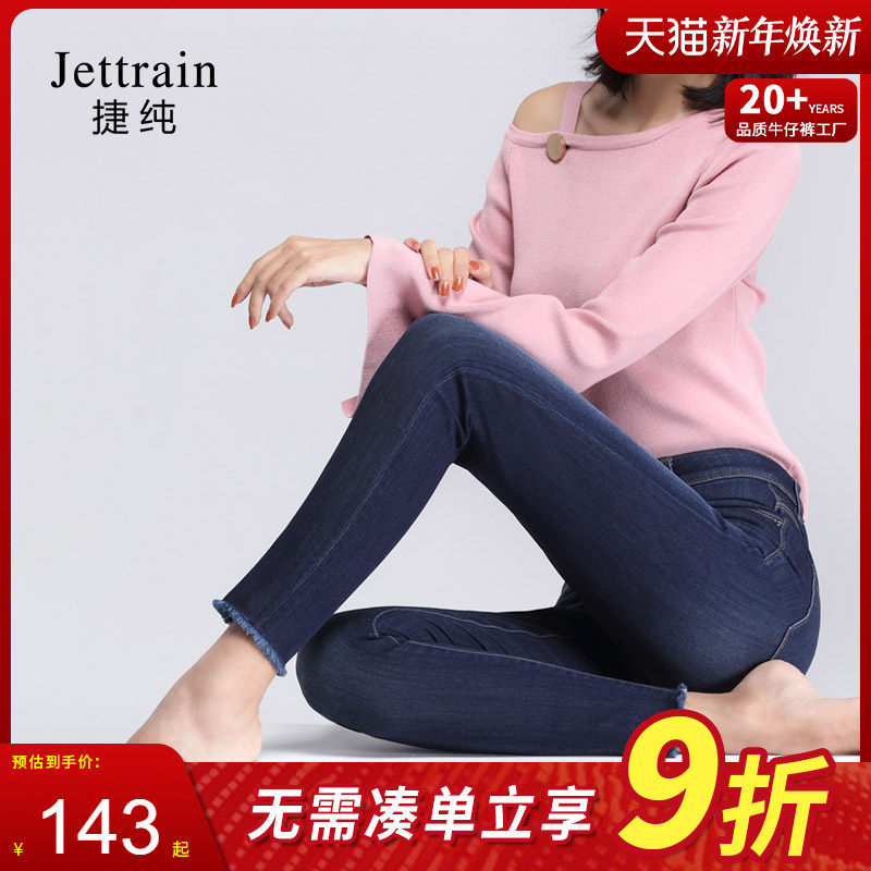 捷纯女裤春季修身九分牛仔裤女小脚裤女士大码高腰显瘦铅笔裤长裤