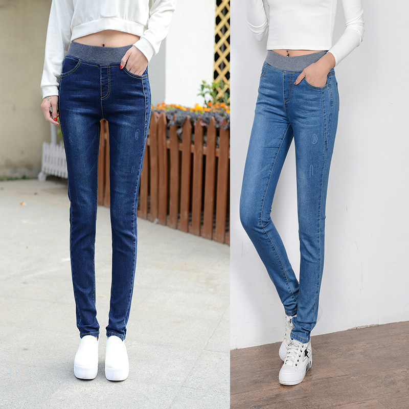 - 女牛仔高腰小脚裤潮