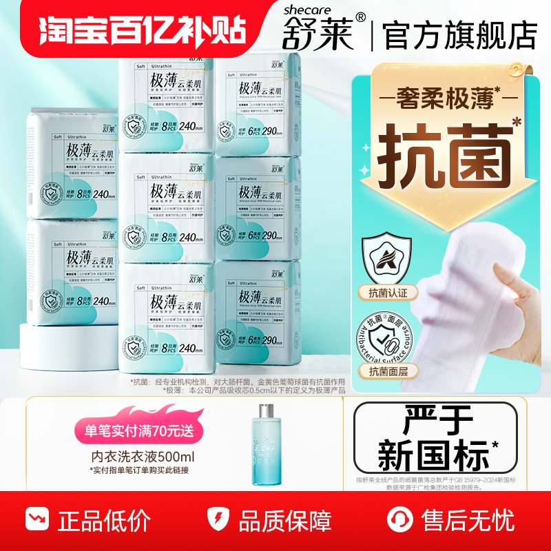 舒莱医护级纯棉卫生巾超薄透气日夜加长消毒姨妈巾官方旗舰店正品