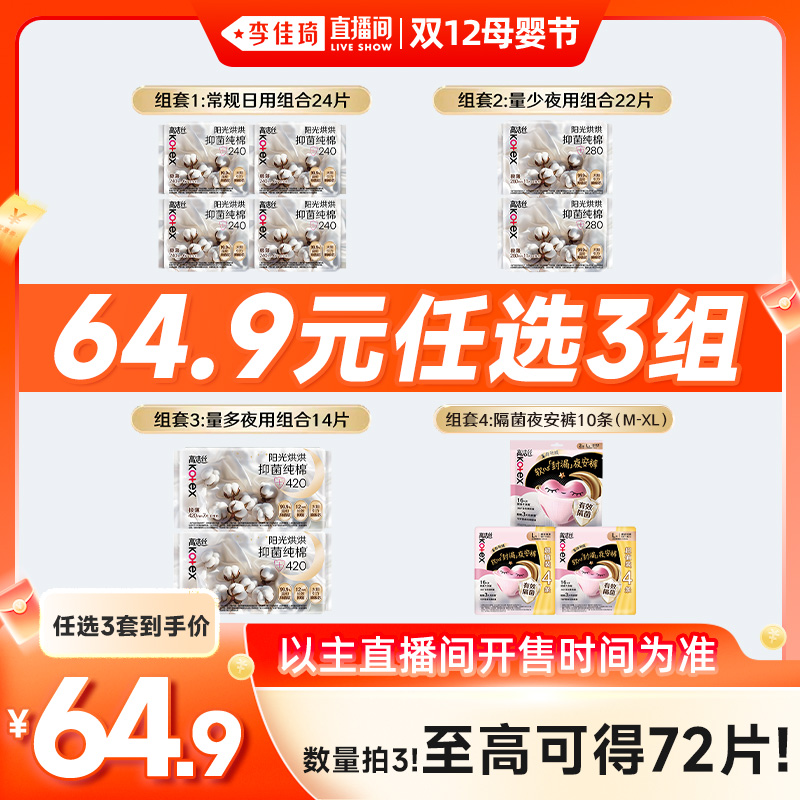 【李佳琦直播间双12母婴节】高洁丝卫生巾安睡裤烘烘抑菌纯棉防漏