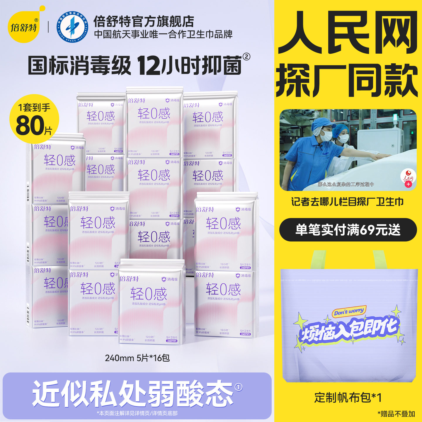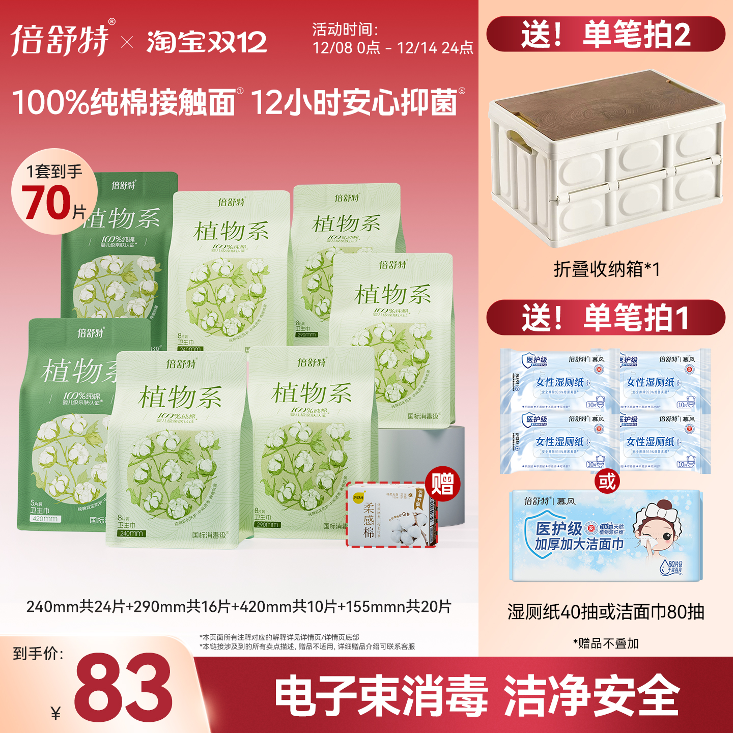 【拍2送收纳箱】倍舒特植物系卫生巾消毒级抑菌纯棉量大日夜组合