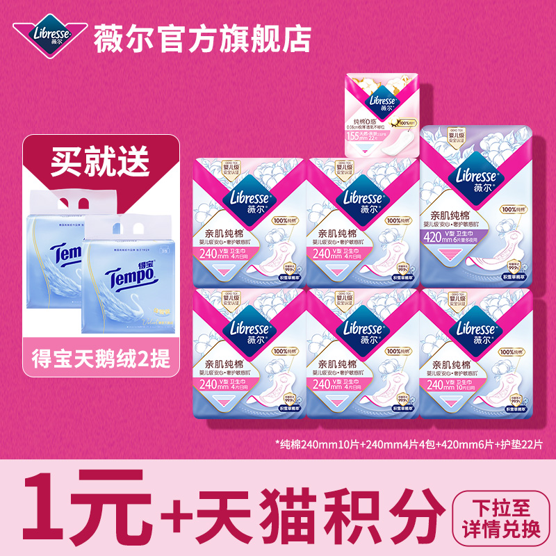 【88VIP】薇尔纯棉卫生巾任选姨妈巾抑菌量大日夜系列旗舰店正品