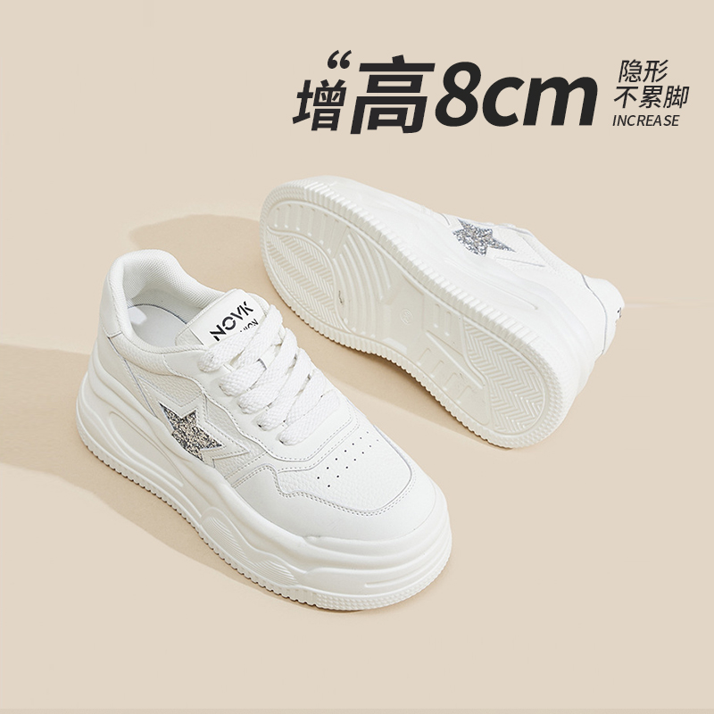 ZFCQ厚底内增高小白鞋女款2025秋新款松糕软底好穿不累脚休闲单鞋