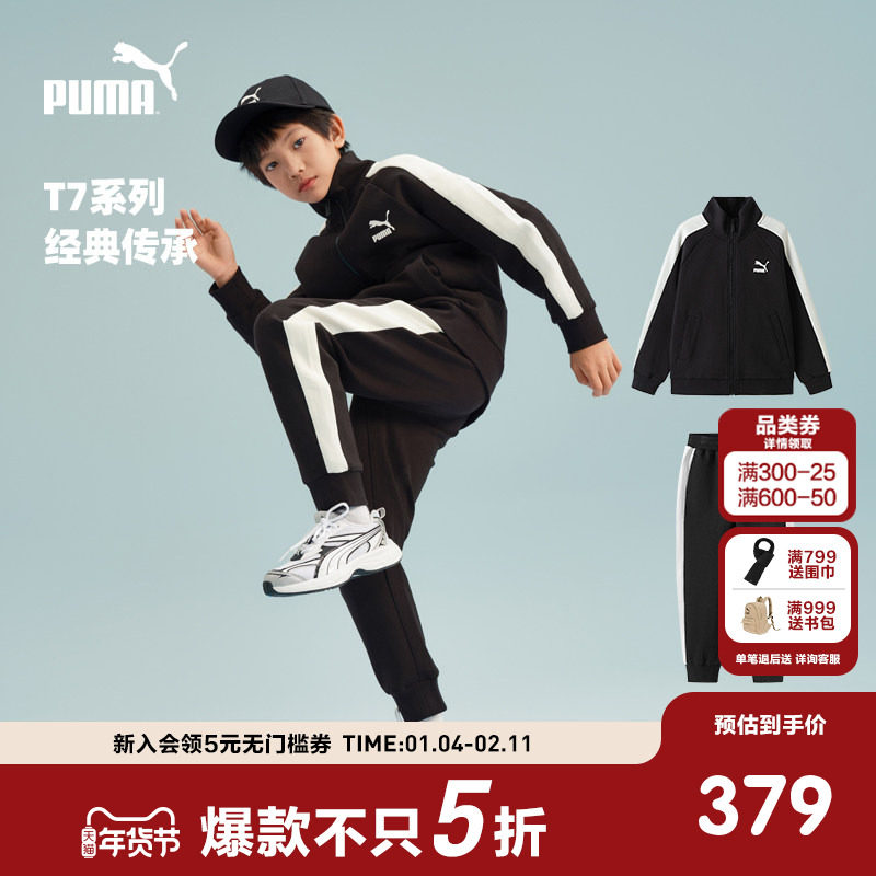 PUMA彪马童装儿童秋针织拉链外套休闲裤2件套T7复古运动潮流套装