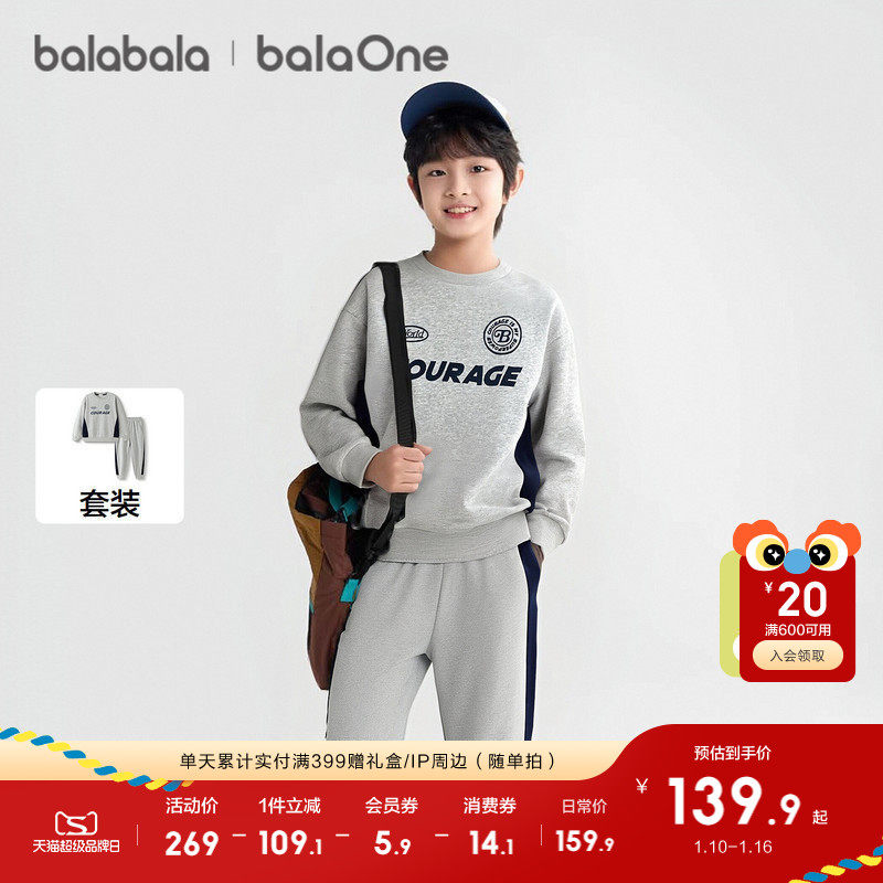 巴拉巴拉童装男童套装儿童长袖两件套2025新款秋装运动校园时尚潮