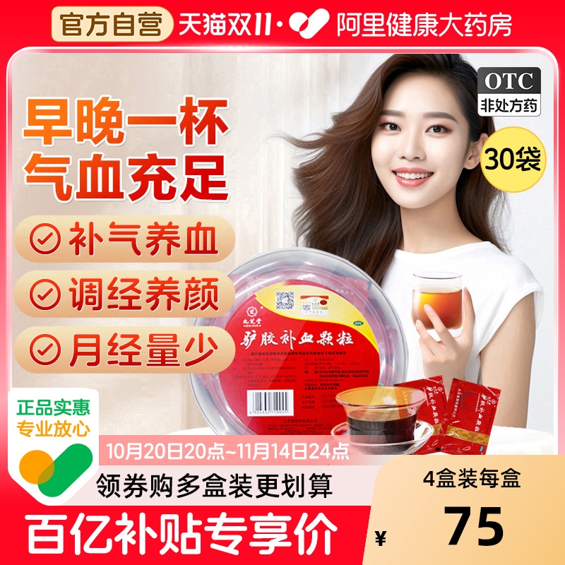 九芝堂驴胶补血颗粒气血不足阿胶产后补气补血养血女人贫血旗舰店