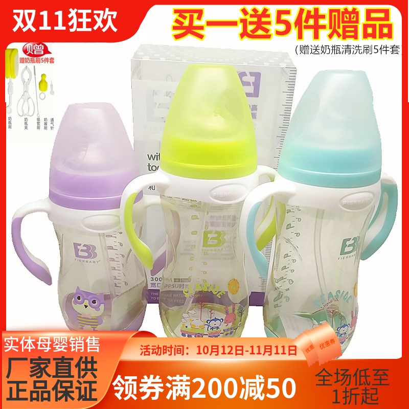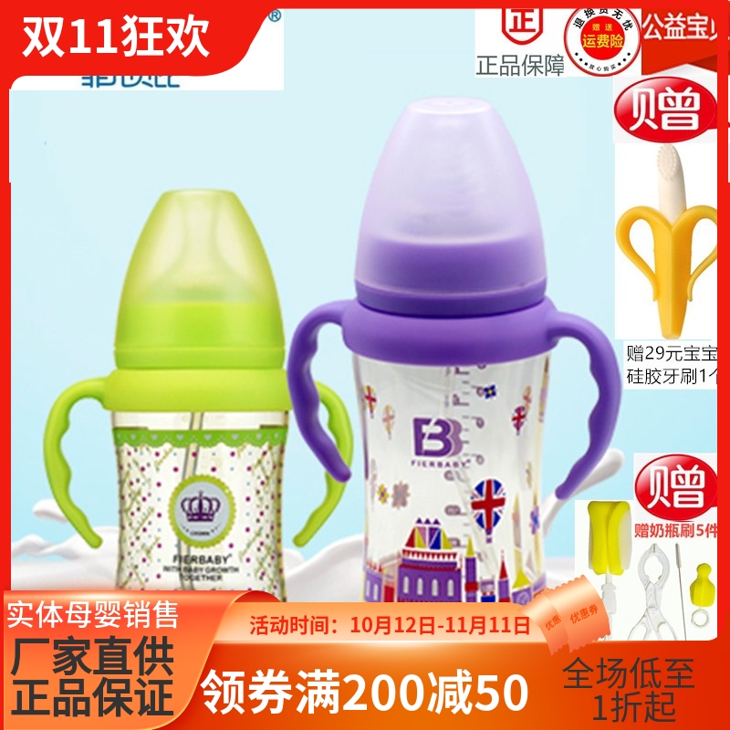 菲儿贝比PPSU奶瓶宽口径防摔防胀气奶嘴带手柄吸管240ml300ml