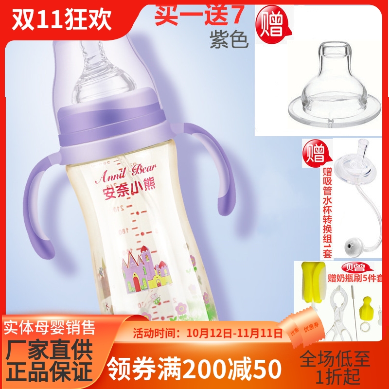安奈小熊ppsu奶瓶宽口径防摔胀气吸管带柄180ml240ml270ml300ml