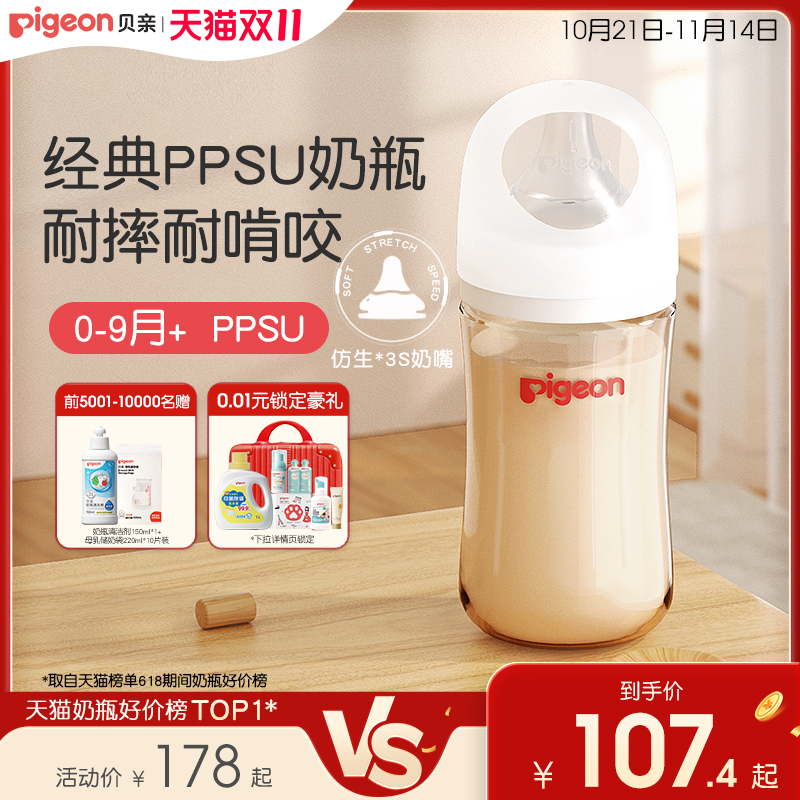 Pigeon贝亲奶瓶婴儿宽口径PPSU奶瓶新生儿奶瓶0-6-9M+