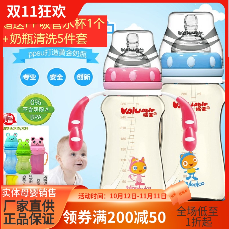 ppsu奶瓶宽口径新生婴幼儿大宝宝防胀气耐摔吸管硅胶水嘴水杯奶瓶