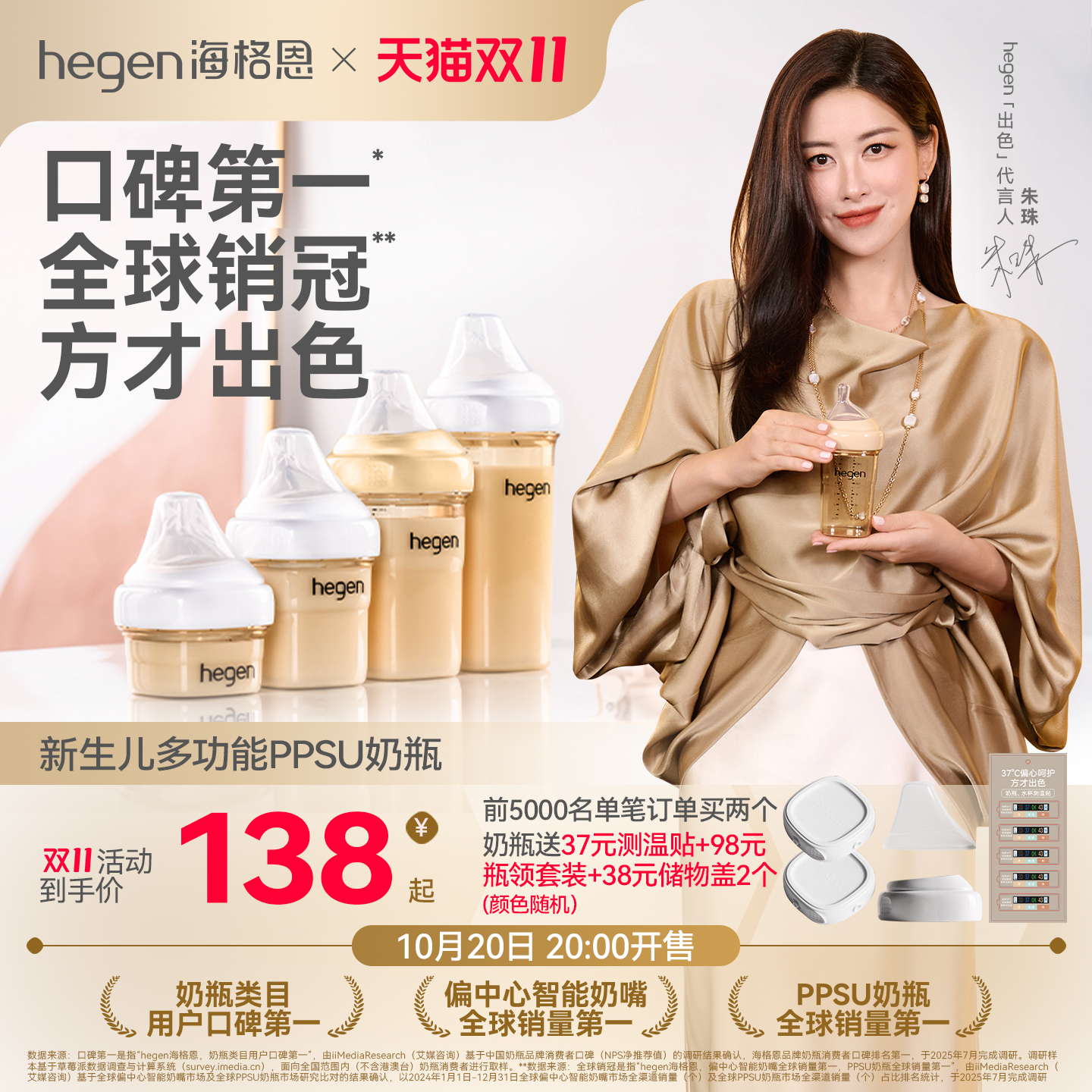 Hegen海格恩新生儿宽口奶瓶PPSU婴儿大宝宝仿母乳防呛防胀气耐摔