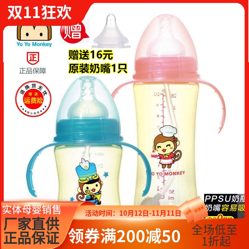 香港优优马骝PPSU奶瓶宽口径带手柄吸管婴儿宝宝防胀气180ml280ml