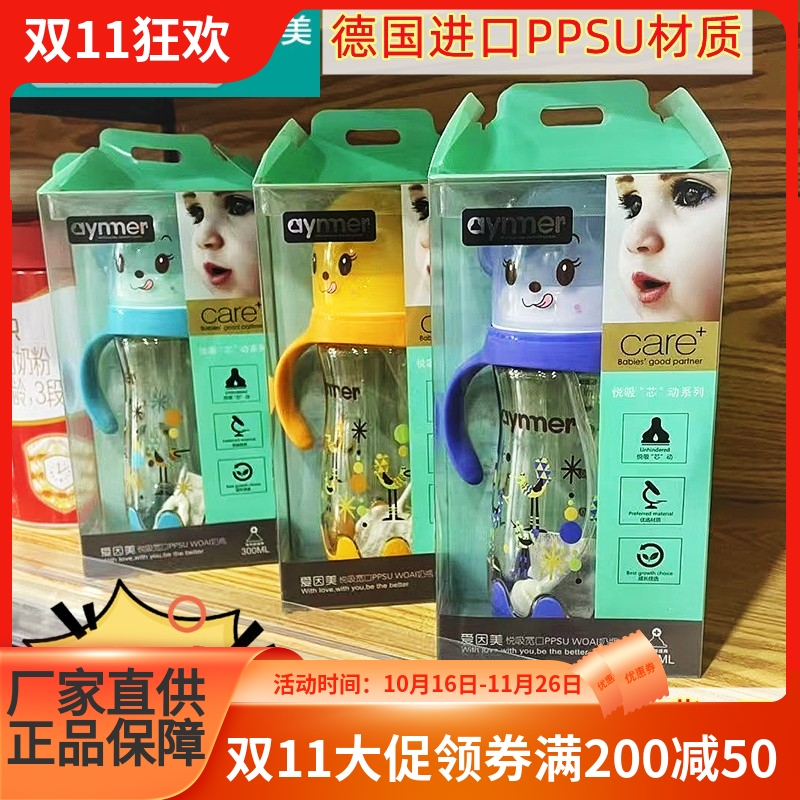 爱因美新款猴子PPSU奶瓶宽口径防摔护唇实感奶嘴防胀气180ml300ML