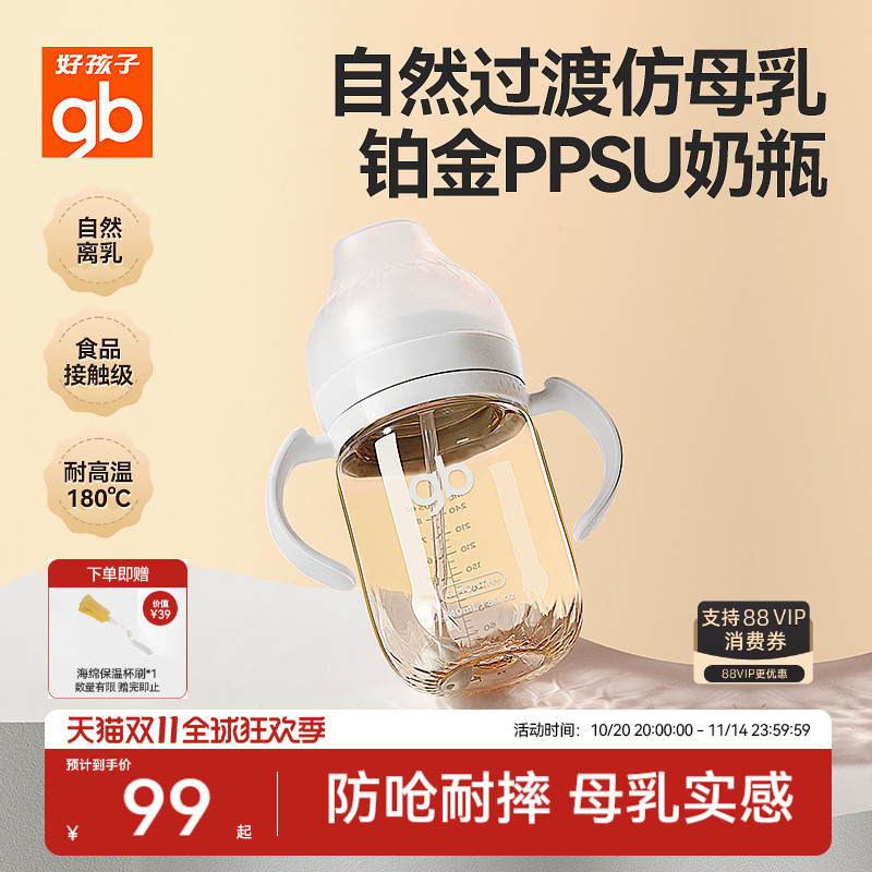 gb好孩子新生婴儿升级铂金系列PPSU奶瓶宽口径宝宝防胀气奶瓶耐摔