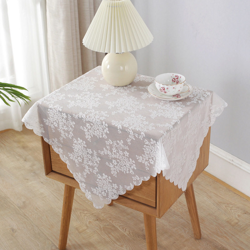 桌布床头柜冰箱盖巾圆方桌盖布饮水机蕾丝防尘罩茶几餐桌布艺台布
