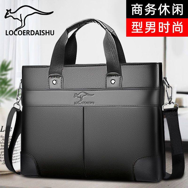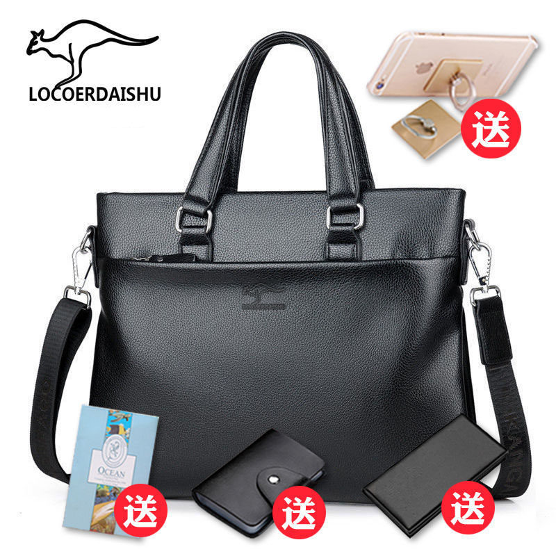 正品袋鼠真皮男包手提包男士包包单肩斜挎包商务皮包公文包背包潮