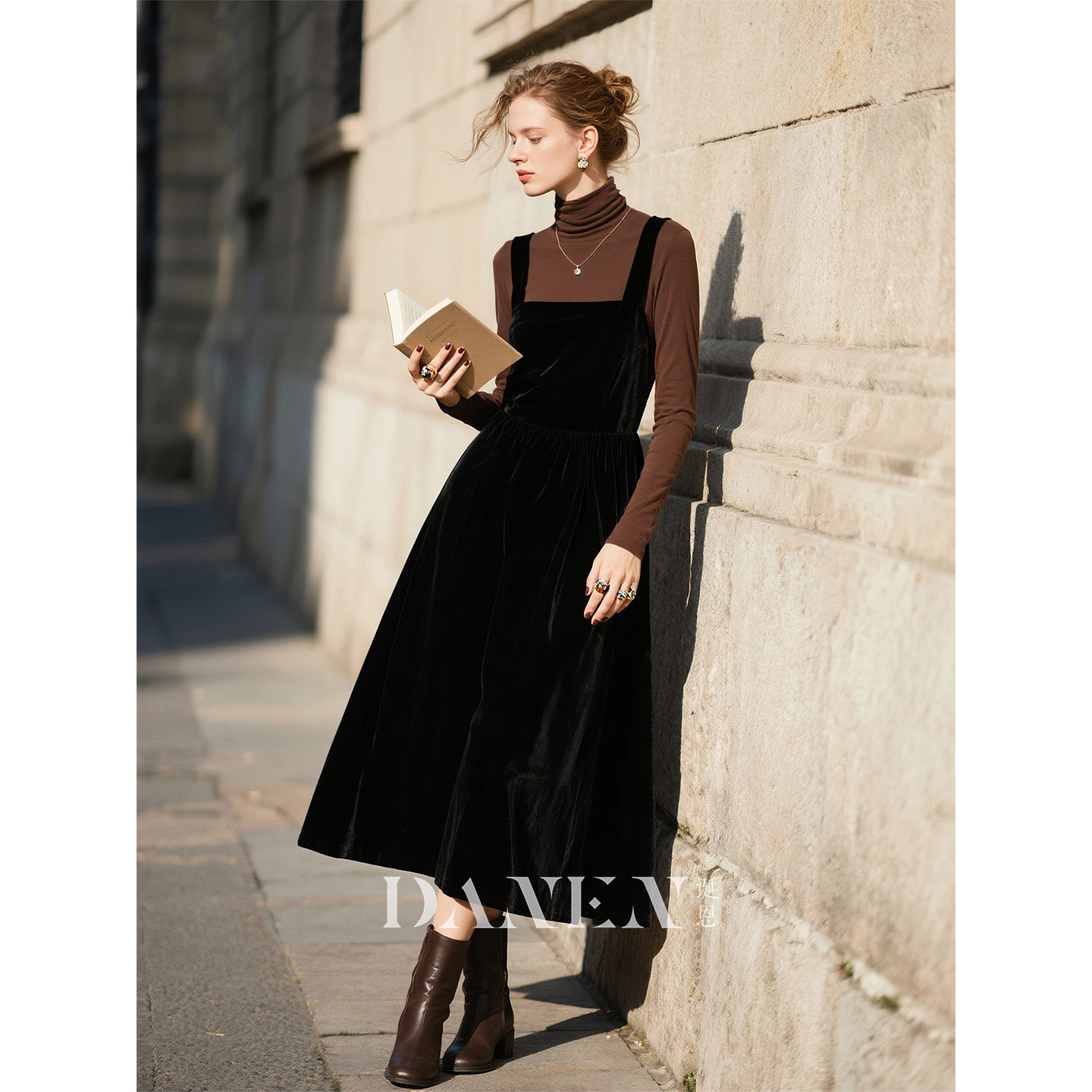 黑色丝绒背带连衣裙女2025年秋冬新款赫本风气质减龄无袖叠穿裙子