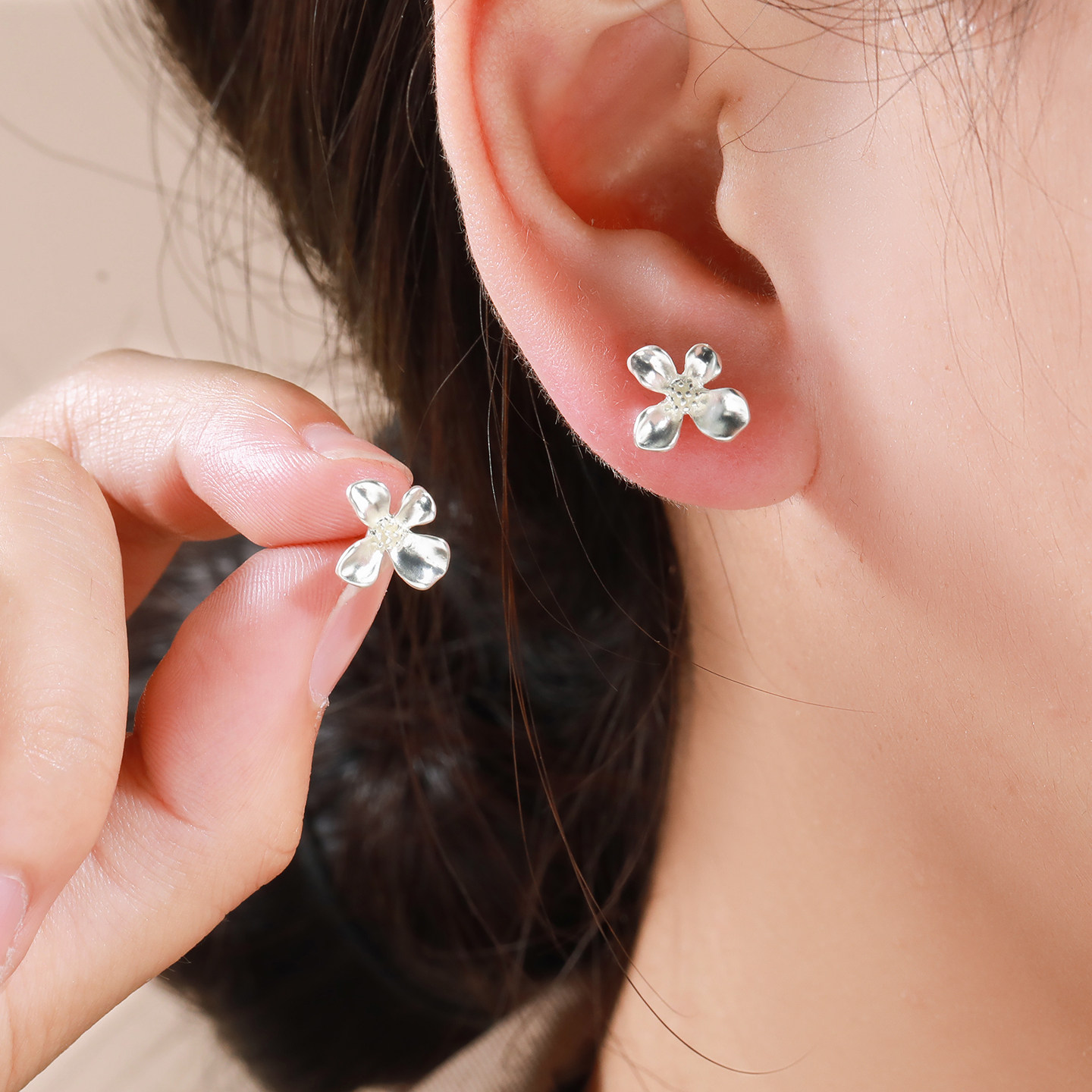 迷你锆石四叶小花耳扣女韩版耳环925纯银简约小清新气质耳饰潮