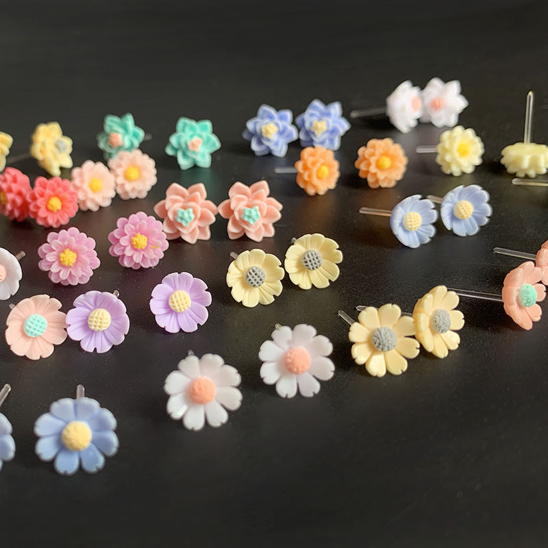 小清新塑料棒消炎耳针耳钉甜美夏日太阳花莲花朵邹菊韩版耳环饰品